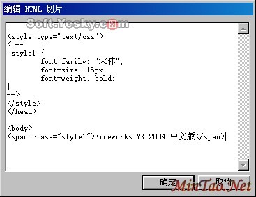 然后点击类型列表下的“编辑”按钮即可在“编辑HTML切片”窗口中输入HTML代码。如此一来,也就把该切片区域转成了HTML的语言区域。