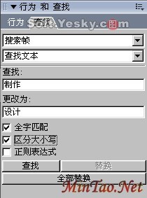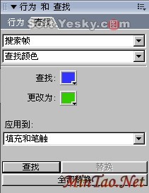 使用“查找”面板可方便快捷地查找或替换文件中的文字、字体、颜色等内容。这对于较大的网页制作或图像处理都将带来极大的方便。
