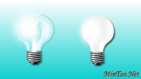 下面就是Fireworks MX 做出的仿真灯泡,左边是透明的灯泡,右边是磨砂灯泡,效果很逼真吧!