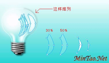 7. 将上面所绘制的图形摆置如下图,添加阴影效果,白炽灯泡即可大功告成。