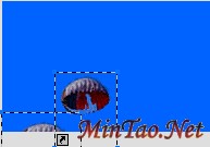 第五步:降落伞的第二阶段。在Layer面板中,选择Frame 26(即已做好的最后一帧),然后选中图上的小降落伞图像,又克隆出另一个降落伞,并把它调整到较大,移动到紧靠前一个小降落伞的旁边,同时选中这两个降落伞图像的引用。