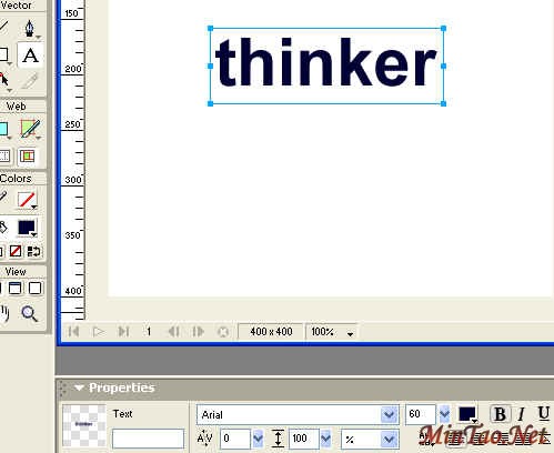 2、选择工具栏中的文字工具,用鼠标在工作区中点击并输入文字“thinker”。