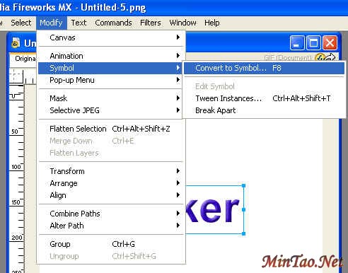 4、用箭头工具选中文本对象,选取菜单Modify>Symbol>Convert to Symbol,或者按F8