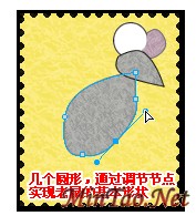 老鼠的形状,必须一步一步的用Fireworks MX 的各种工具来画。老鼠的样子就按照邮票原样中的老鼠形状来设计,我们用画笔依样画葫芦就是了。
