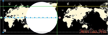 step7:退出符号编辑状态,在主动画文件中,用鼠标拖动绿色的点(第一帧),使圆形和地图的位置如图所示。