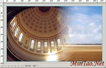 -调整渐变调整杆上的正方形手柄直到你对图像边缘混合进dome图像之内的方式感到满意为止.