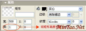 3. 在属性面板中,将该矩形设置成高为1px,长度自定像素;
