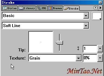7.选中b,填充色设为无,打开storke面板,设置如下图,在电脑键盘上,按两下向上方向的键,再按两下向左方向的键.同时选中a和b,modify---group把它们组群.给它重命名为c.得到如图效果