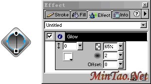 4、选择Ellipse Tool(椭圆形工具)按住Shift键绘制正圆形。注意该圆形要小于底图矩形。然后为圆形填充直线渐变,渐变定部为黑色,底部为灰色。最后,选中圆形,引用Shadow and Glow中的Glow(外发光)命令,指定发光颜色为白色。具体设置见图。