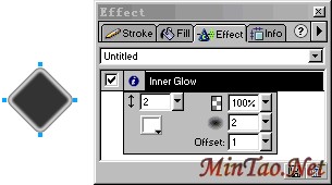 2、选中图形,打开Effect(效果)面板,在效果列表中选择Shadow and Glow(阴影与发光)项目中的Inner Glow(内发光)命令,为圆角矩形添加效果。