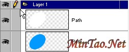 第二、选中变形后的椭圆,"edit-->clone" ,克隆一个新的椭圆,将其填充色改为白色(这个颜色就是将来你要产生对比效果的颜色,可以随自己的需要来变动),克隆后的白色椭圆的位置和蓝色椭圆位置重合。层面板如图所示。