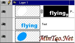 第四、 选中一个文字层, "edit-->cut" (快捷键 ctrl+x ),然后选中白色的椭圆,点选菜单项的 "edit-->paste as mask" ,效果是不是出来了?没有?呵呵,你需要再调整一下各层的顺序,看看左图各层的排列,调整后,是不是已经出现我们需要的效果图了……