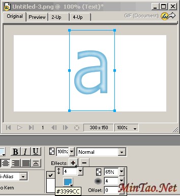 1.创建画布300x150,输入字母a,无外框,字体Tahoma,字号手动输入150px。