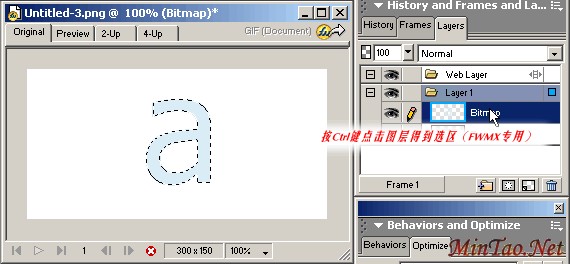 4.原位克隆字母a(Ctrl+Shift+D),去掉内发光设置。Modify-->Flatten Selection(Ctrl+Alt+shift+Z)转字母为位图。按住Ctrl键,点击位图所在图层得到选区。