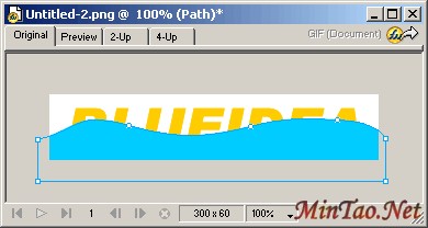 在层面板将波浪图形往下拉一层 。你还可以选中图形,使用Modify-->Arrange-->Send Backward(Ctrl+Down)来执行同样的操作。然后把上层文字填充改为白色。