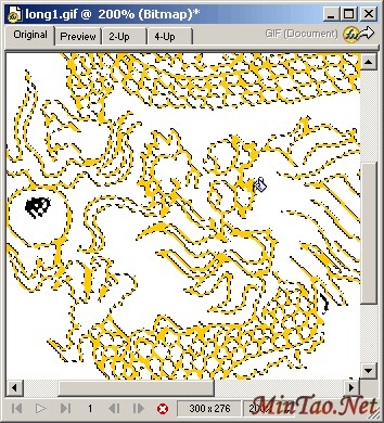 然后放大画布,用魔术棒仔细选取黑色部分。这个图很多线条都是相连的,所以选取工作花不了半分钟。接着点选油漆桶工具,选择你要的颜色(我用的是#FFCC00),在选区内逐个填充。