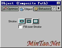 第十步:因为没有了Fill(填充)色,所以此刻文字的中心呈现空白效果,这不是我们需要的。还是选定这个字符对象,打开Object(对象)面板,将Stroke描边方式选择中间的“沿路径居中”填充,如图所示。好了,看看编辑区的字符对象发生了什么变化?