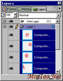 第五步:选定编辑区的文本对象,执行菜单命令“Text--Convert to Paht”,将文本对象转化为路径对象,然后执行快捷键“Ctrl+Shift+G”或者点击快捷工具栏的“取消组合”按钮,解散转化为路径对象文字的群组关系。此时层面板会如图所示。