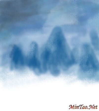 3.使用【毛刷】和【柔化圆形】绘制远山的轮廓