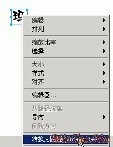 步骤六、选中其中的“玛”字,单击鼠标右键,选择其中的“转化为路径”,这样,这个文字就被变成了线段组成的形状,而不是过去的字体了。