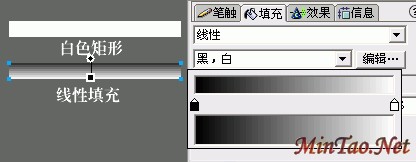 步骤三、用矩形画出一个高8px 长88px的矩形,填充为白色,再创建一个大小同样的矩形,填充为线性(黑、白),调节线性填充的方向。如图:
