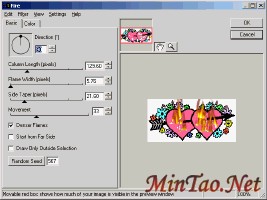 10、FIREWORK 3和CARVAS7中的“LIVE EFFECTS”: EYE CANDY 4000中的所有滤镜都可以在FIREWORK3和CARVAS7中以“LIVE EFFECTS”方式工作,也就是说,当用户对应用了滤镜的对象进行某种更改后,滤镜效果也自动更新,另外,既使是在应用了滤镜之后,它的效果也是可以重新调整的,方法是双击效果图片,滤镜窗口便自动弹出,然后重新设置参数。