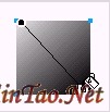 3、此刻正方形的填充效果是默认的由上向下的填充,不符合我们的要求,我们需要将填充方向进行调整,记得在“一款立体字的制作”的教程中,给大家介绍了使用油漆桶工具进行填充方向调整的简单方法,大家可以在这里实践一下了:从左上角的方向向右下角的方向拖动油漆桶,就产生了我们需要的斜向渐变色填充的效果,如下图所示: