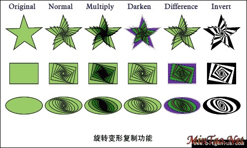 4、 多个对象的旋转变形功能:将原始对象扩充为多个,执行旋转变形命令后,即可能到类似于Twist and Fade插件的效果。如下图: