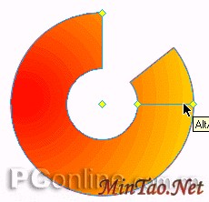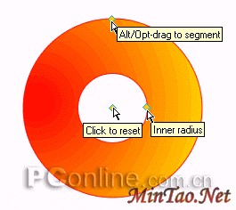 c、中部右侧的调整点同样是用来调整圆环内部圆形的大小的,不另作介绍了。