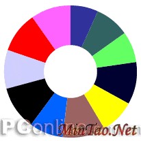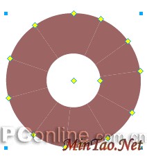 呵呵,有什么用处呢?此刻选取工具箱的超级选择工具就可以选中任意的一个扇形进行颜色调整了。如果你想仔细的调整,可以执行菜单命令“Modify--Ungroup(快捷键是Ctrl+Shift+G)”就可以将上面的图形打散了,原来这个圆环已经被刚才的那些线段切割成了不同的扇形了。