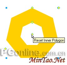 3号点:选中该点会出现提示框:Inner Polygon(内部多边形)。向边缘方向拖动鼠标,会出现什么变化?内部也出现了一个多边形,而且增加了一个Reset Inner Polygon(恢复原状)的控制点,具体的操作和上面介绍的圆环的操作基本类似了!请自行体会。变化效果请看下图: