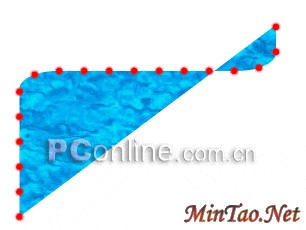 请注意: 本步是可逆的,如果你对切割线的出现位置不满意,仍然可以直接选中调整点进行角度大小调整,甚至你可以拖动调整点到上一个调整点这样两个调整点就自然重合了。当然,这些操作都不需要配合键盘上的Alt键了。请大家自行试验吧!