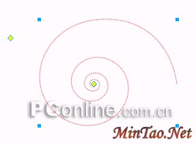 从上图可以看到,螺旋线图形的调整点有两个,左侧的不用说了,肯定是对螺旋线的层数进行调整了,选中控制点,向上、向下拖动鼠标吧!果然,螺旋线的层数产生了增加、减少的变化;中心的控制点是用来控制螺旋线的封闭还是开放的,只需要通过单击鼠标即可实现闭合、开放的改变,轻松……好了,图形比较简单,但是实用,看看能产生什么效果: