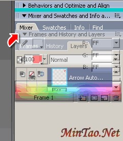 用惯了FWMX,刚拿到2004版本时打开的第一件事就是重组右侧的执行面版。Fireworks MX 2004本身的默认设置(800X600分辨率下),只有Assets,Colors,Frames and History三种面版群组(其他分辨率下右侧的面版区域组合会有不同),其余面版仍然藏在Windows弹出菜单下。这样的设置跟我们以往MX中熟悉的个人自订的工作界面太不同了,所以开始我们的新工作前要先组织一下已经习惯了的面版,就好像换了个新办公桌要先做布置,工作起来才得心应手。