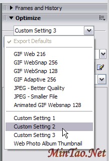 为利于重复使用,有必要储存你最满意的影像优化设置。选择优化面版右上角弹出菜单中的Save Settings...,你的新设定选项将出现在优化面版顶端的下拉菜单内。