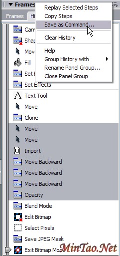 只需要在历史记录面版选择整套步骤并回放或存成可再使用的命令即可。