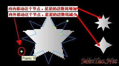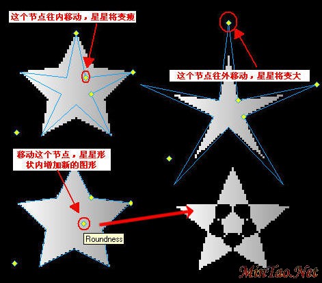 在星星图形上,有几个节点通过鼠标拉动节点,可以从这个基本的图形上演变出其他的效果。
