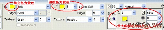 最后我们把月亮的颜色改为黄色,增加边线条。再加一个光晕的效果,在属性面板中加入Glow发光,发光的颜色为黄色。