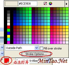 利用虚线笔刷,我们可以制作很多效果,例如文字的边框,下面我们来试试。先书写一个文字,然后在属性面板中找到笔触的颜色调节板,点开它看到有一个“Stroke Options”的选项,选择这个选项。
