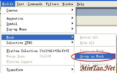 将它们全部选中,在修改菜单下选择遮照(Mask),然后选择“Group as Mask”