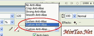 我们在属性面板的字体边缘设定选项,看到2004版本增加了系统反锯齿(System Anti-Alias)和自定义反(Custom Anti-Alias)锯齿两个选项