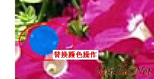 下面使用颜色替换工具在花瓣上进行颜色处理了,处理时将显示比例放大,让我们看得清楚一些,根据花瓣的大小我们随时更改工具的尺寸。