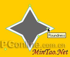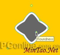 b、选中上部的第二个调整点,向内部拖动,来调整内角的圆滑度,
