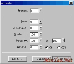  2、选定图层1中的波浪图,按下F8键,将图像转换成Animation(动态符号)。在弹出的动态符号设置框中指定Frame的数量为5。其它项目不动。