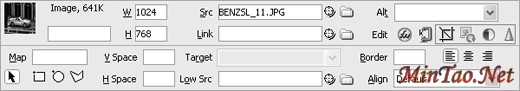 在Dreamweaver MX 2004环境中先选择一幅图片,在下边的属性对话框中就会出现内建图片编辑器。