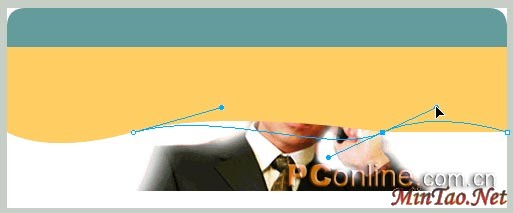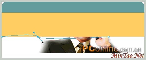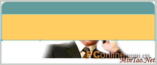 3、在执行打孔命令后生成的园角矩形对象下方绘制一个矩形对象,高度以达到位图对象高度约2/3处为准(此处凭个人感觉可自行决定),为了便于今后叙述我们把矩形的填充颜色变为淡黄色。选取工具箱的超级选择工具(白色箭头),在黄色矩形的任意一个顶点处单击鼠标,选定该路径节点(如果在单击顶点时弹出对话框的话,点击确定即可),然后选取工具箱的钢笔工具,在黄色矩形框的下方路径上单击以增加路径节点,增加的路径节点如下图所示,位置差不多即可。