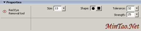 一如FW内多数其他工具,你可以在属性面版下调整红眼移除工具的相关设定,见下图:
