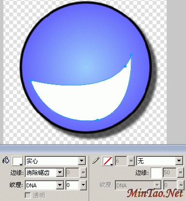4.单击“图层面板”上的“新建位图图象”按钮,新建一层,起名为“嘴”,然后选择“钢笔”工具,在“属性面板”中选择填充方式为“实心”、白色。其描边种类为无,勾画出一个娃娃的嘴的形状。