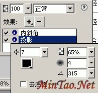 “投影”设置参数:距离为 7 、透明度为 65% 、柔化为 4 、角度为 315 。