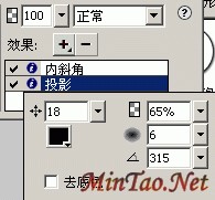 投影效果参数:距离为 15 、透明度为 65% 、柔化为 6 、角度为 315 。